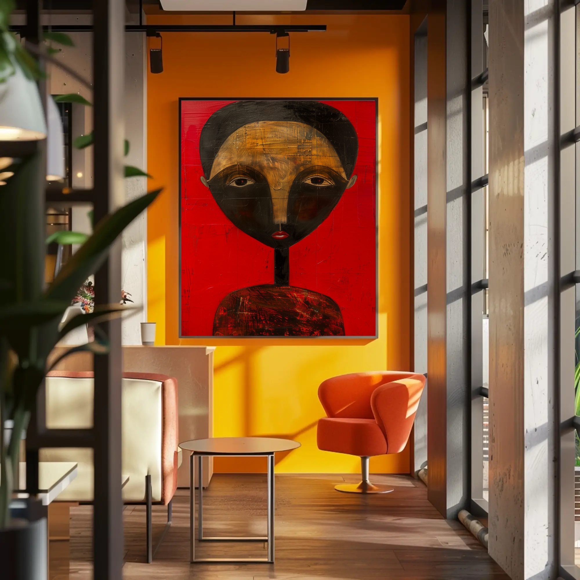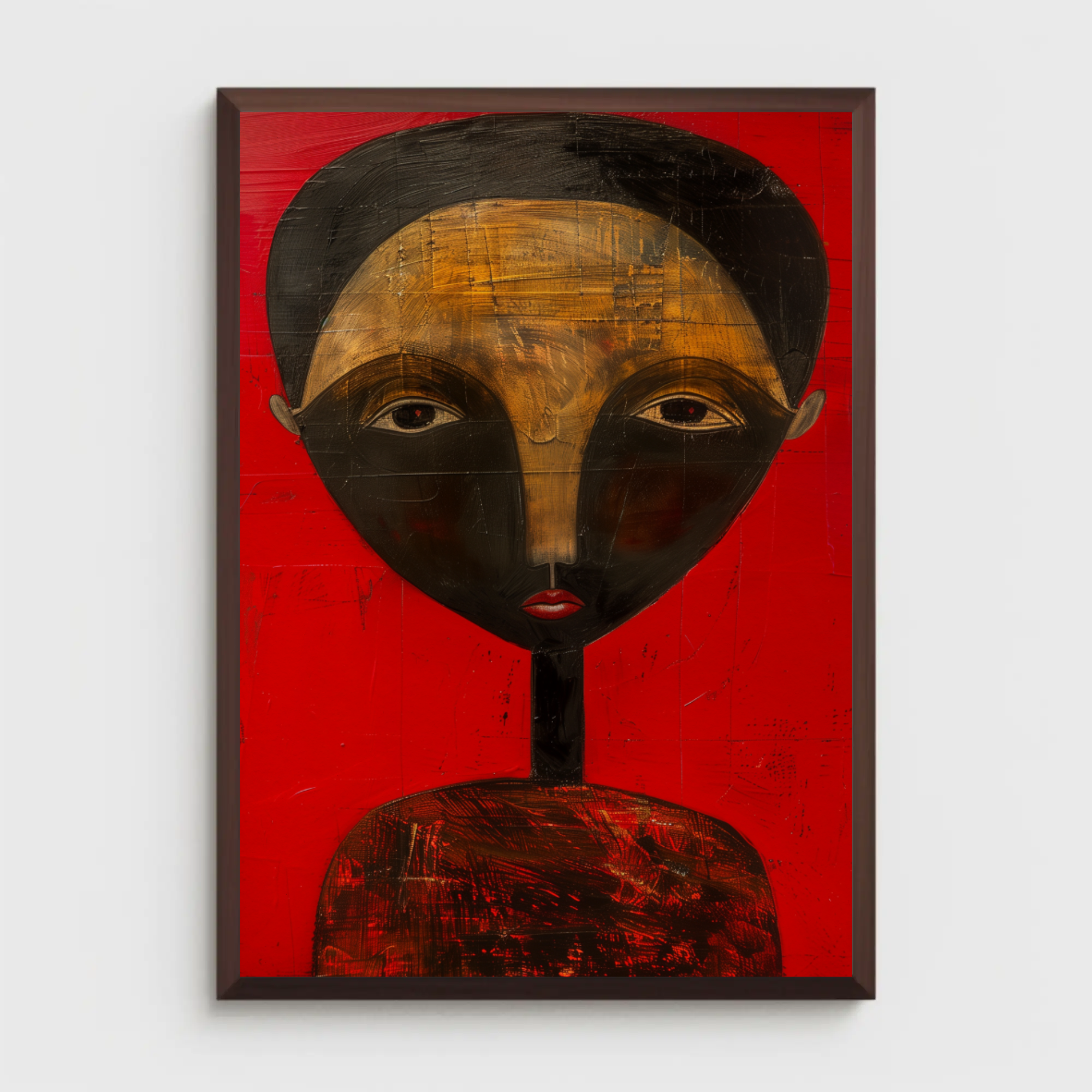 Parfaite pour un intérieur artistique ou minimaliste, Regard Rouge s’impose par sa verticalité, son regard fixe et sa palette audacieuse. C’est une pièce qui ne passe jamais inaperçue.