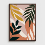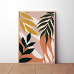 La toile Soleil Doux invite à une contemplation apaisante, entre nature stylisée et abstraction contemporaine. Sur un fond rosé subtil, des feuillages aux teintes profondes — vert forêt, ocre doré et crème — dansent autour d’un cercle solaire, symbole d’harmonie et de sérénité. Les formes fluides et les superpositions évoquent un coucher de soleil dans une jungle stylisée, une parenthèse suspendue entre chaleur, silence et beauté.