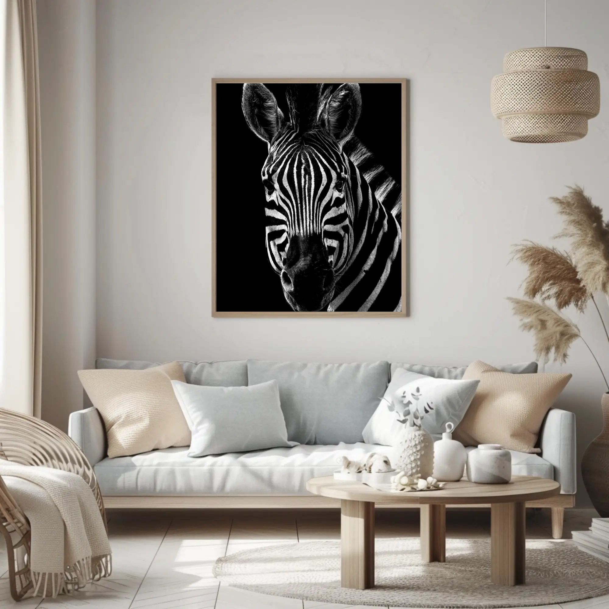 Parfaite pour des intérieurs contemporains, minimalistes ou monochromes, « Zebra Focus » devient une pièce maîtresse sur un mur clair ou foncé. Elle attire l’œil, intrigue et suscite l’admiration. Pour créer une galerie cohérente, associez cette toile à d’autres œuvres comme « Silent Gaze » ou « Earth Giants », formant ainsi un ensemble harmonieux autour du noir et blanc et des portraits animaliers.