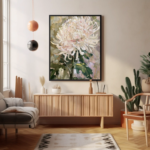 Une explosion de tendresse pastel à travers une fleur majestueuse, capturée avec des coups de pinceau expressifs et une texture voluptueuse. Cette œuvre évoque la fragilité, la grâce et le renouveau.